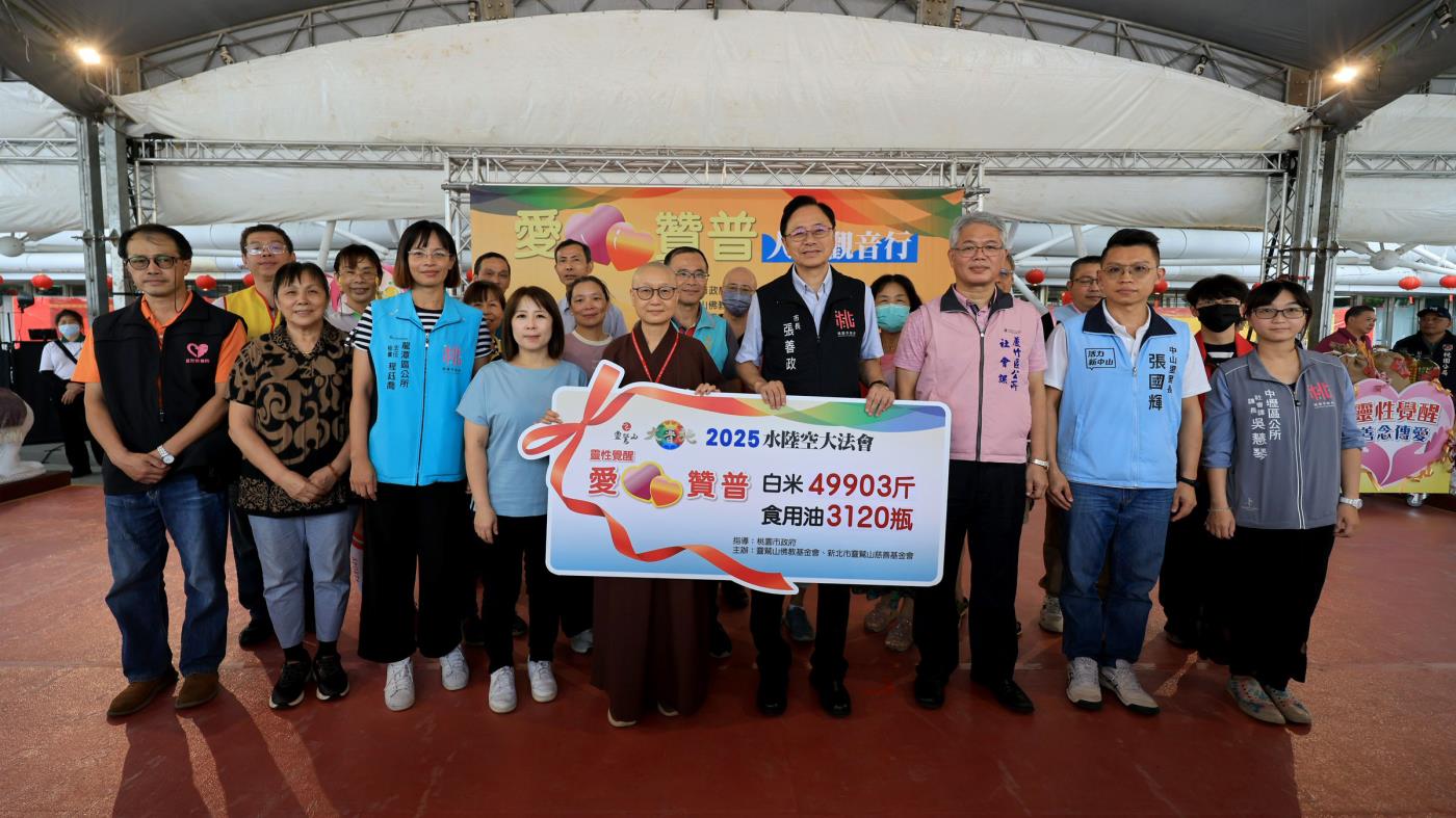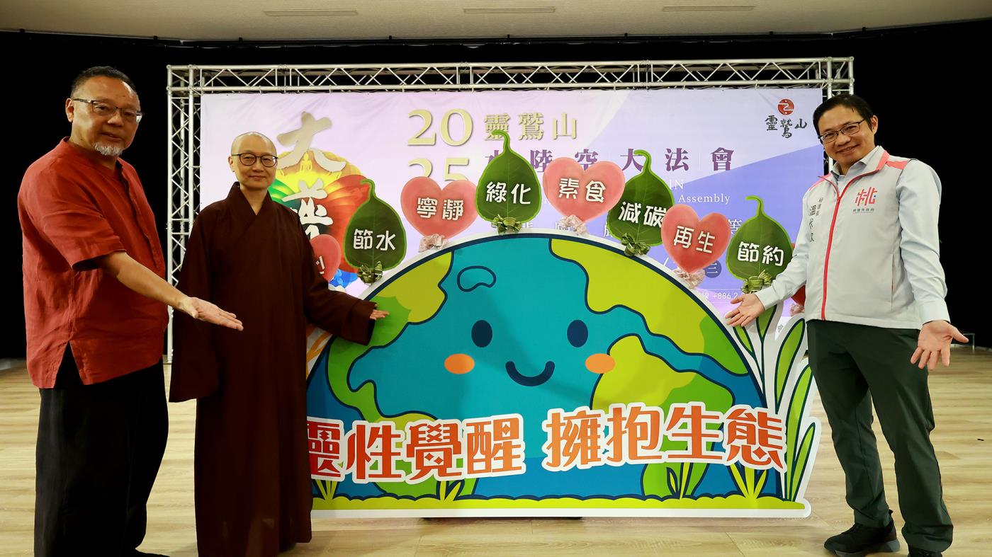 靈鷲山的努力,也與桃園市的永續政策遙相呼應。桃園市連續兩年獲得國際碳揭露計畫(CDP)的最高A級肯定,是台灣唯一達成此殊榮的城市。心道法師表示,「靈性覺醒不是口號,要『心行合一』的實踐」。這份精神不僅體現在法會中,也延伸到與地方政府的合作。桃園市民政局副局長藍品畯表示,市府以「法規、獎勵、教育、認證」四大策略,引導宮廟與信眾實踐環保祭祀。目前已成功減少香支逾2萬6千支、金紙近2萬公斤,碳排放更下降約3萬公斤,兼顧傳統敬神祈福的文化意義,也立下「敬神明、護地球」的全台典範。