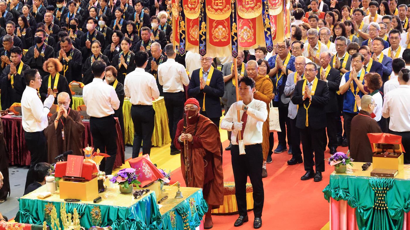 9月15日晚間,法會迎來最核心的佛事——「幽冥戒」。這場莊嚴殊勝的法會,不僅吸引海內外信眾,泰國摩訶朱拉隆功佛教大學副校長、內政部常務次長吳堂安、新北市長侯友宜等多位政界貴賓也親臨現場,與眾多信眾共同見證這場法會,祈求冥陽兩界和諧,眾生離苦得樂。
