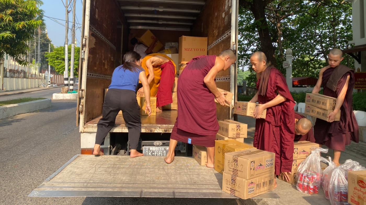 Deputy Dean of the LJM Maha Kusala Yama Monastery Sramanena Orphan School, Myanmar, Venerable Heng Ming, accompanied local monastics and laity to conduct field surveys and coordinate relief missions for the hardest-hit areas, such as Sagaing and Mandalay. He also supported international cooperation by adopting the LJM pattern of localization as follows.