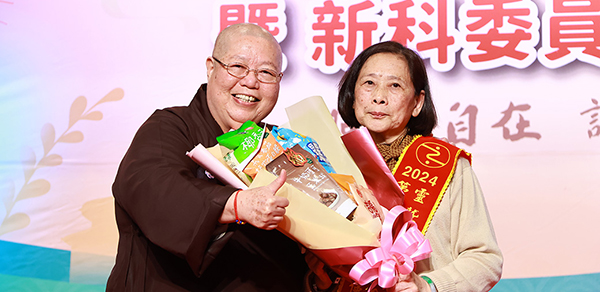 夫妻倆同獲佛法大使的殊榮,是護法會一大佳話。回首追隨心道法師的 38 年歲月,蔡木花感嘆:「我們牢記師父的教誨。沒有師父,就沒有今天的我們。」她說,師父教她持《水懺》、《梁皇寶懺》與〈大悲咒〉為修行法門,幫助她將病痛轉化為功德力量,「師父讓我明白,業力是修行契機,我告訴師父會追隨他做下去。」